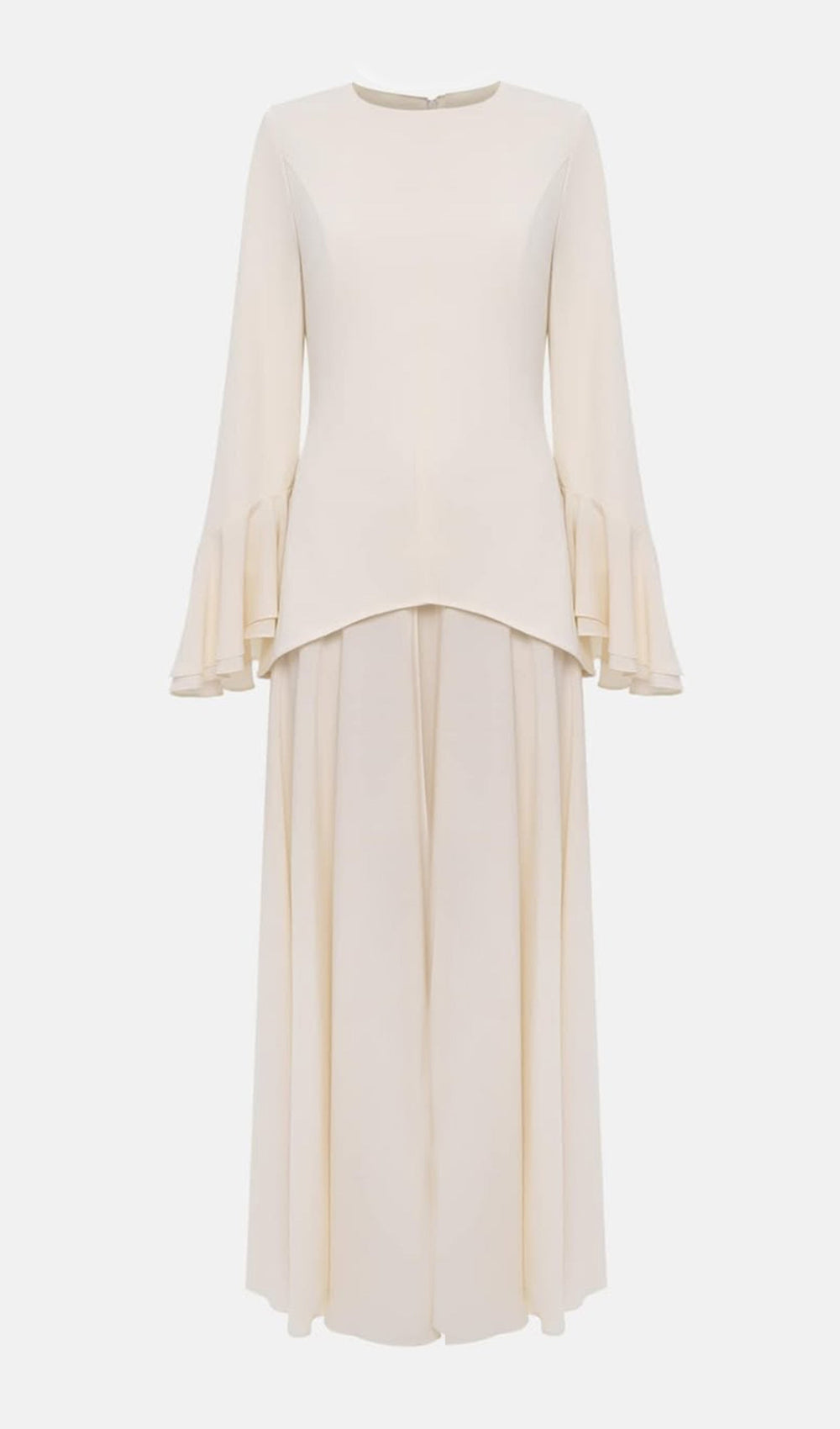 This elegant Asymmetrical Draped Bodice Ruffle Maxi Dress offers a unique, feminine silhouette with its one-shoulder design and cascading ruffles. The draped bodice and flowing maxi skirt provide a flattering and comfortable fit for any occasion. Elevate your style with this statement piece.