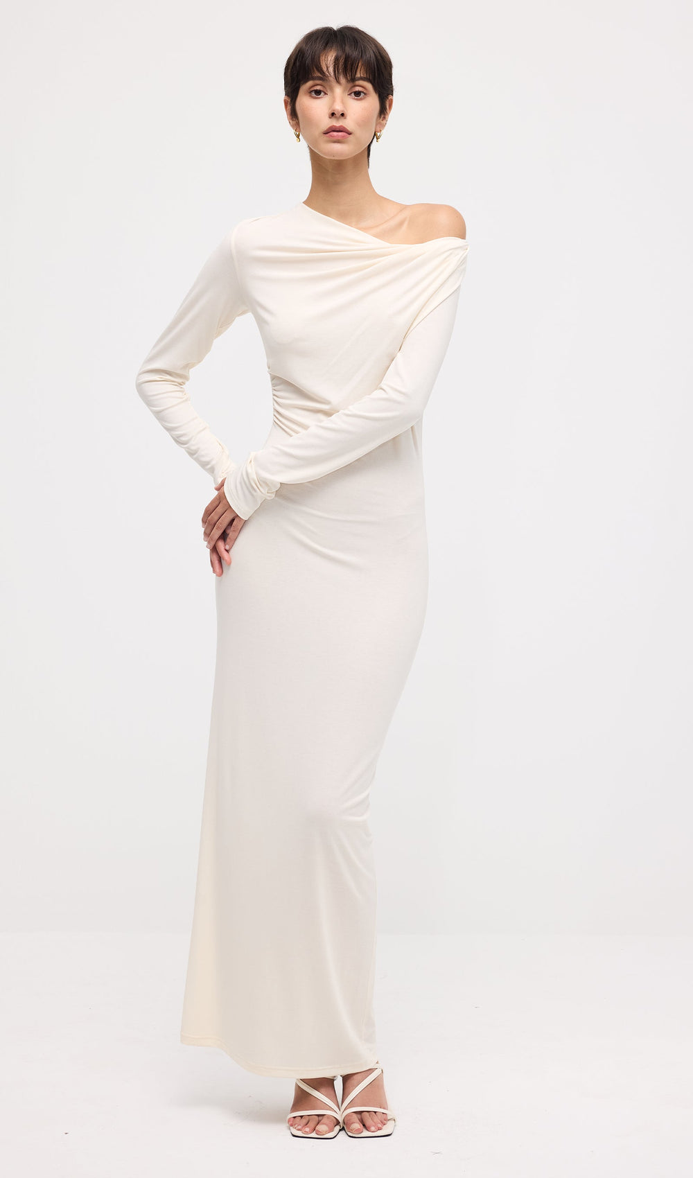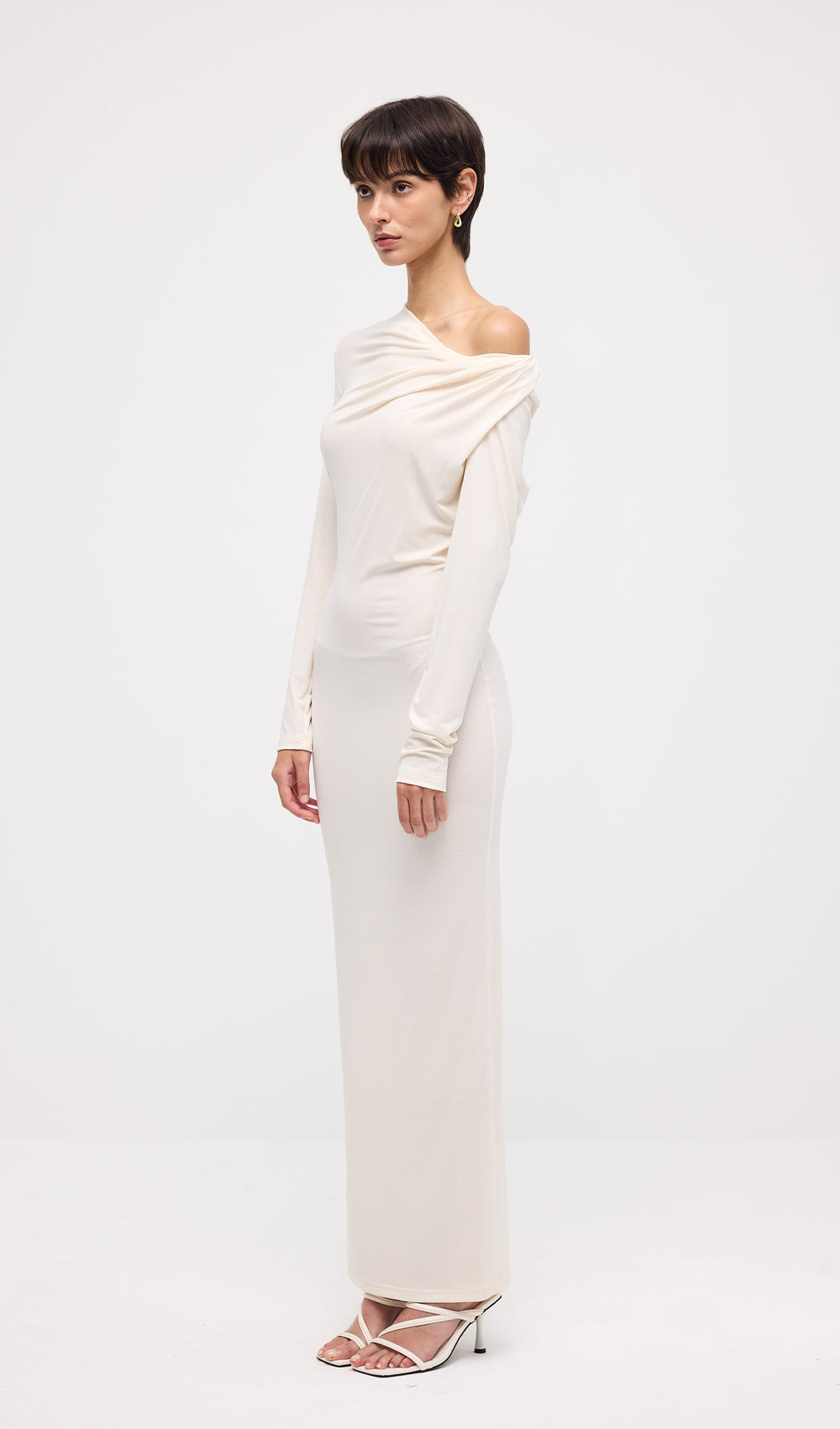 The Draped Twist Knit Maxi Dress is a refined statement of modern sophistication. Designed with a striking twisted neckline, this fitted silhouette effortlessly enhances your figure while offering a sleek, contemporary edge. The long sleeves balance the form-fitting design, while the midi length adds a touch of understated allure. Crafted from soft, unlined knit for a lightweight feel, this dress is perfect for both daytime polish and evening refinement.