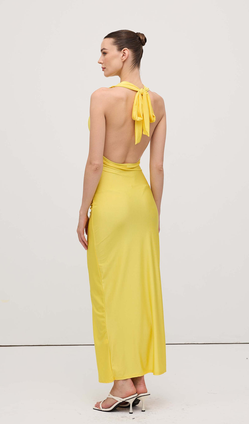 Effortlessly enhance your wardrobe with our Halter V Neck Slit Midi Dress. The halter neck and v-shaped neckline create a versatile style suitable for any occasion. With a flattering slit, this midi dress offers comfort and sophistication in a timeless design.