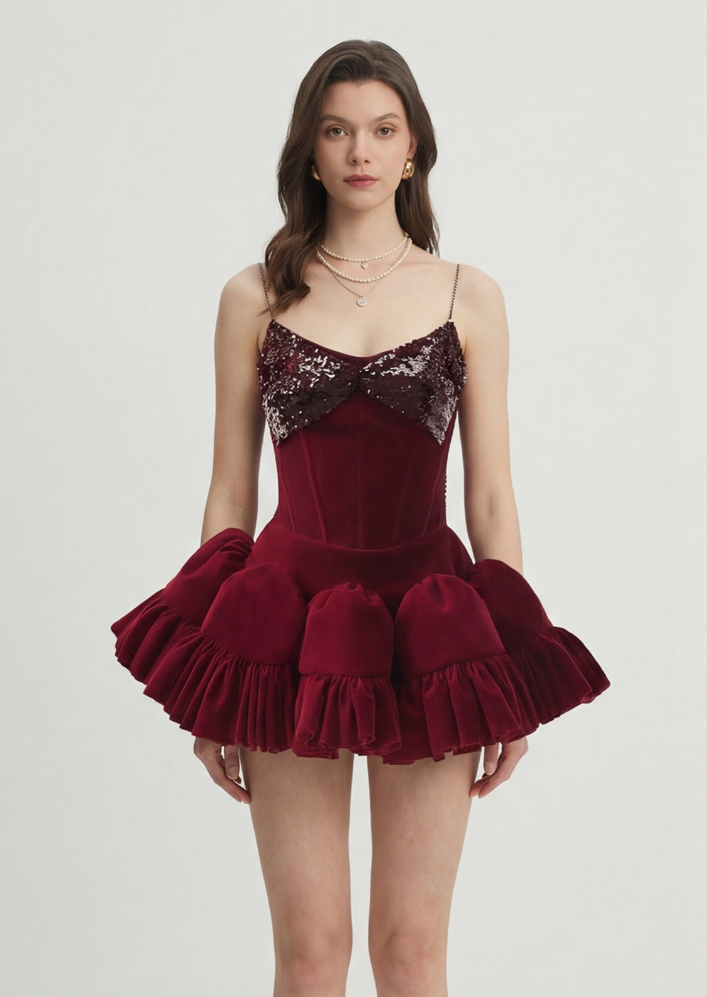 Crafted from luxurious velvet with an all-over sequin embellishment, this sleeveless mini dress delivers sophisticated glamour for evening occasions. The fluid silhouette skims the body while the shimmering sequins catch light with every movement, creating an eye-catching effect. Perfect for cocktail parties, celebrations, or nights out, this piece transitions effortlessly from day to evening with the right styling. The velvet base provides structure and comfort, while the sequin detailing ensures you'll command attention. A versatile wardrobe essential for those seeking elevated, statement-making pieces.