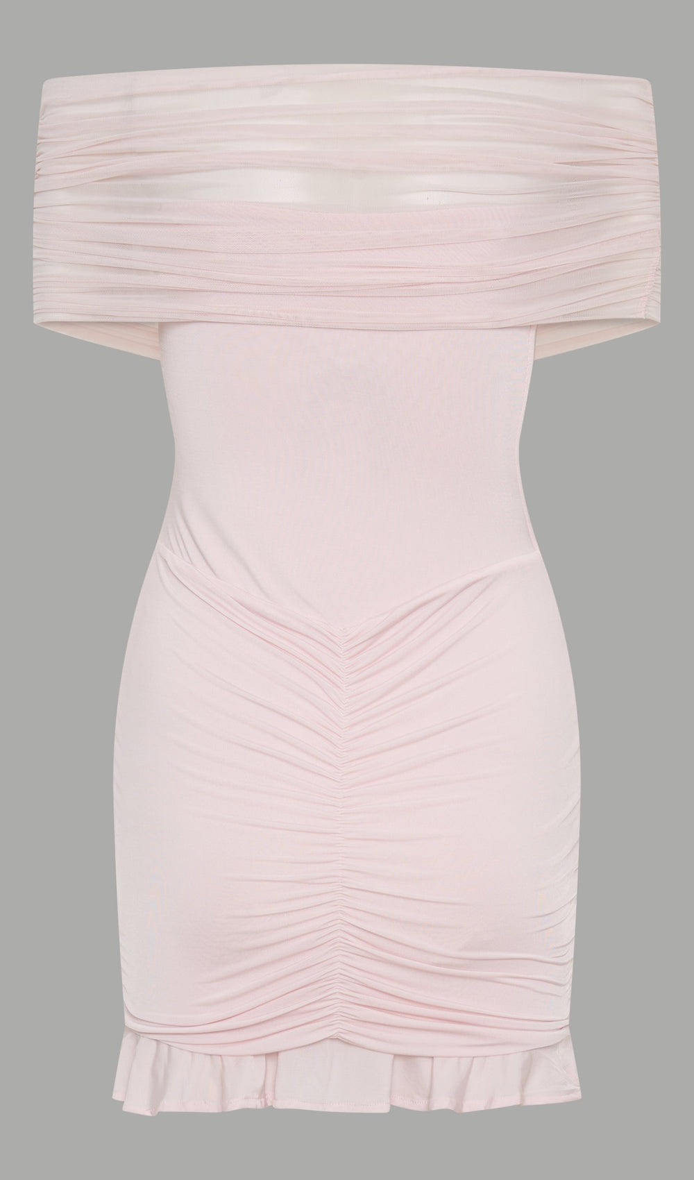 Embrace the magic of Stardust Nights in the Slinky and Mesh Off Shoulder Mini Dress, a stunning blend of sophistication and allure. Designed with a boat neckline and a strapless internal structure beneath a soft mesh overlay, this dress radiates elegance and drama. The ruching detail at the waist enhances your figure, ensuring a flattering, comfortable fit. A playful mesh hem frill adds a touch of whimsy, while the lined bodice provides added comfort and support. With its mini length and captivating design, this dress is the perfect choice for formal events or special occasions, offering a balance of grace and confidence.