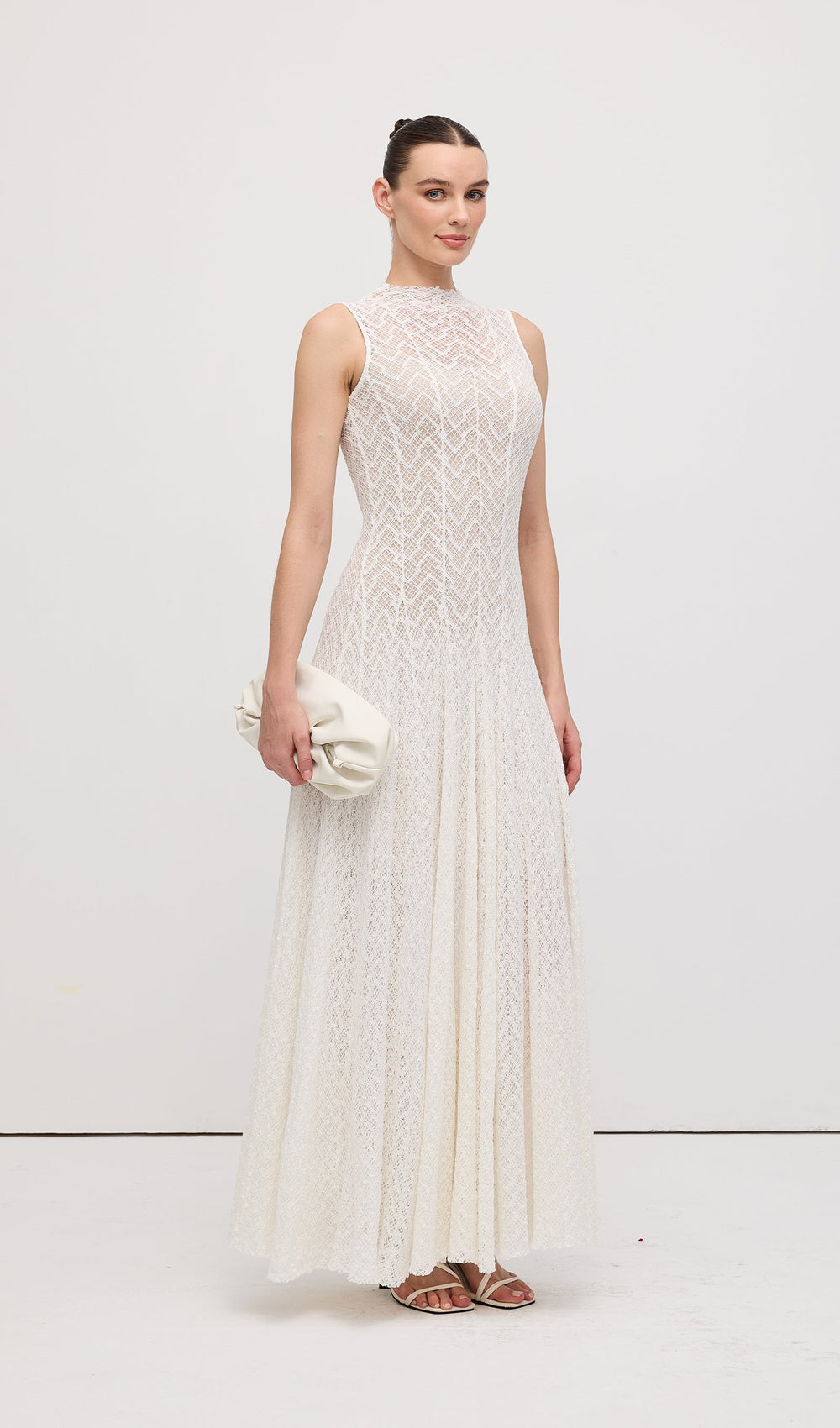 This Solid Pointelle Sleeveless Maxi Dress combines sophisticated craftsmanship with timeless elegance. The intricate pointelle detailing adds textural interest to the clean silhouette, while the sleeveless design ensures unrestricted movement and versatility. Expertly constructed to drape beautifully, this full-length piece offers both refined style and exceptional comfort for day-to-evening transitions.