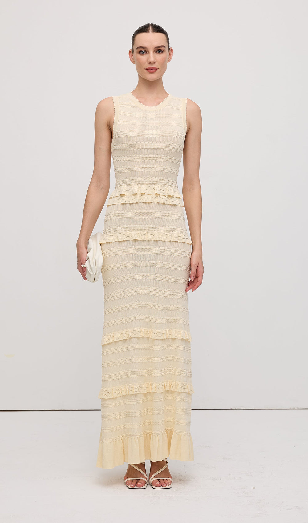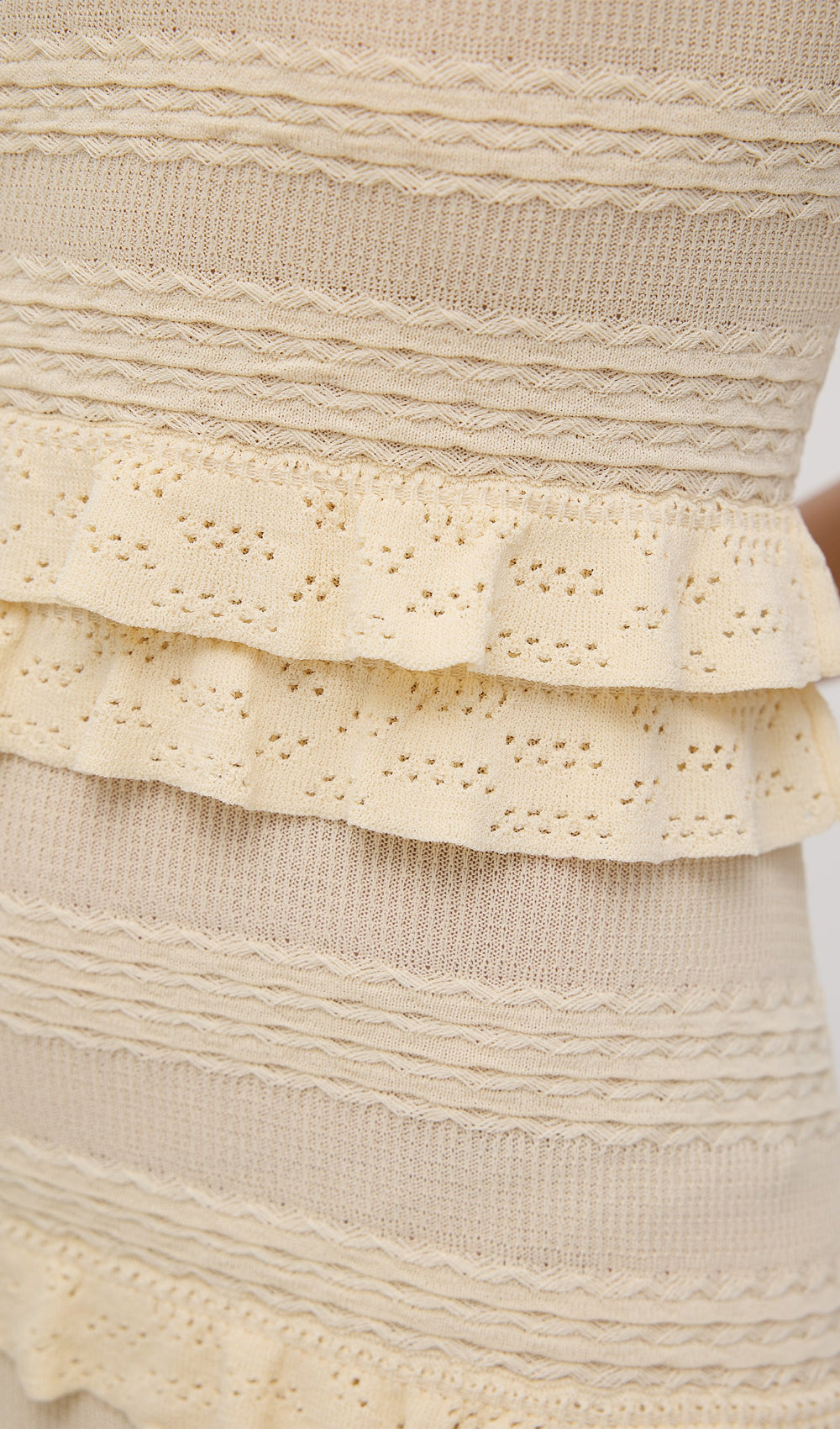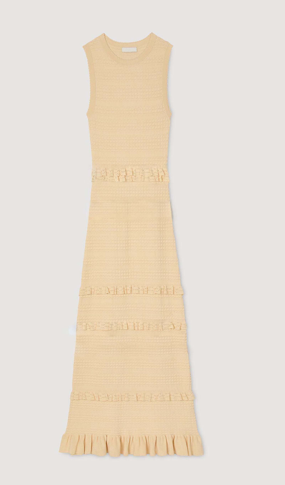 Elegant and summer-ready, QW's dress will take you from brunches to garden parties with ease. Crafted from a knit viscose blend, it offers a touch of stretch for a comfortable fit. Ruffle trims enhance its romantic appeal.