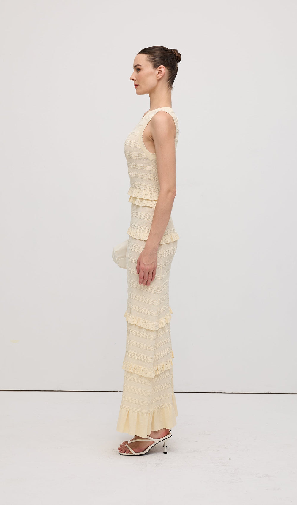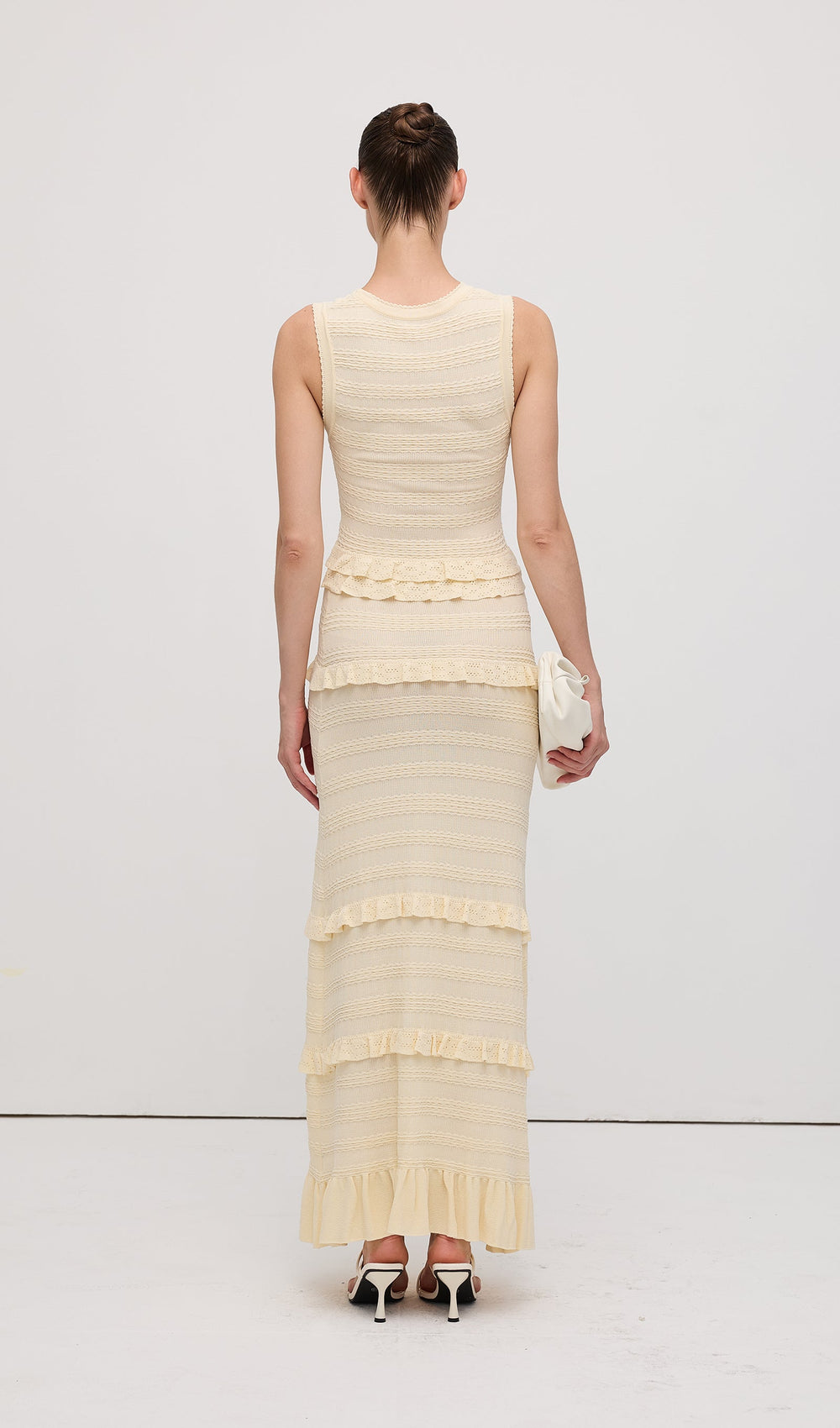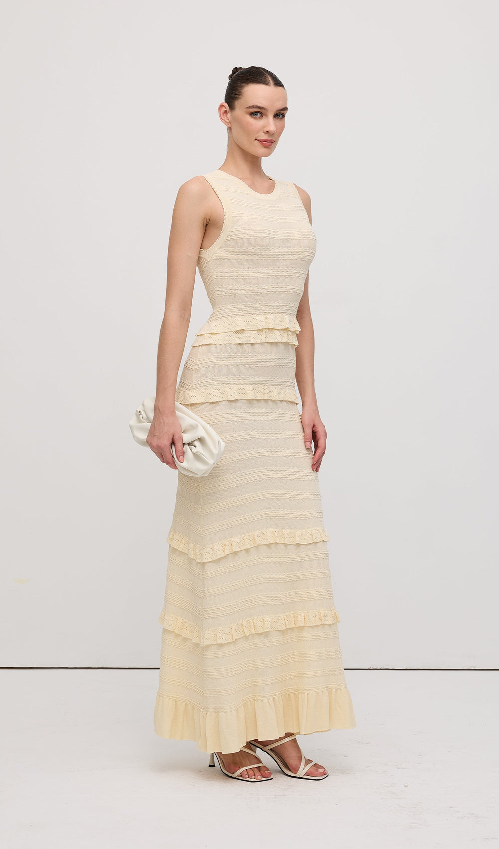 Elegant and summer-ready, QW's dress will take you from brunches to garden parties with ease. Crafted from a knit viscose blend, it offers a touch of stretch for a comfortable fit. Ruffle trims enhance its romantic appeal.