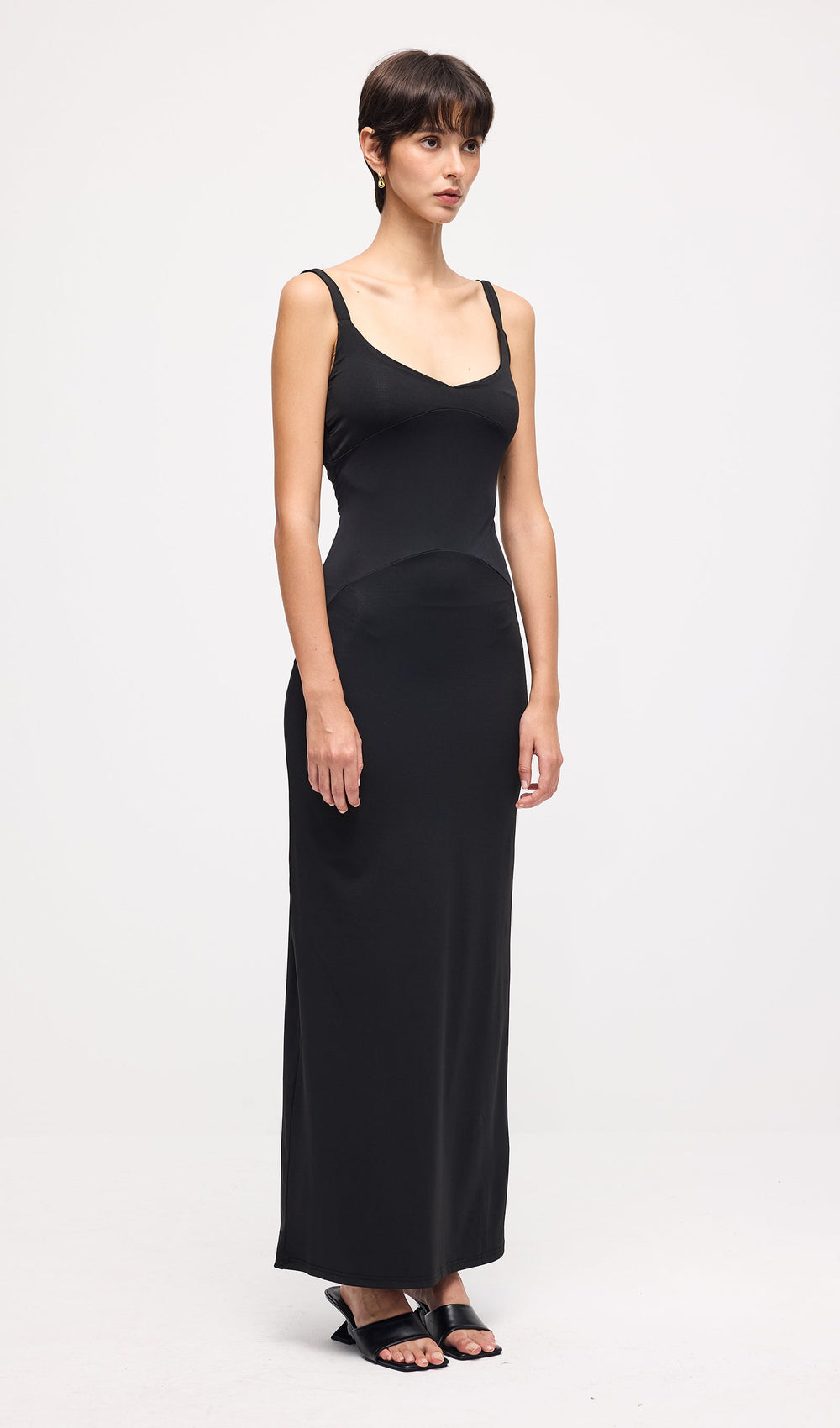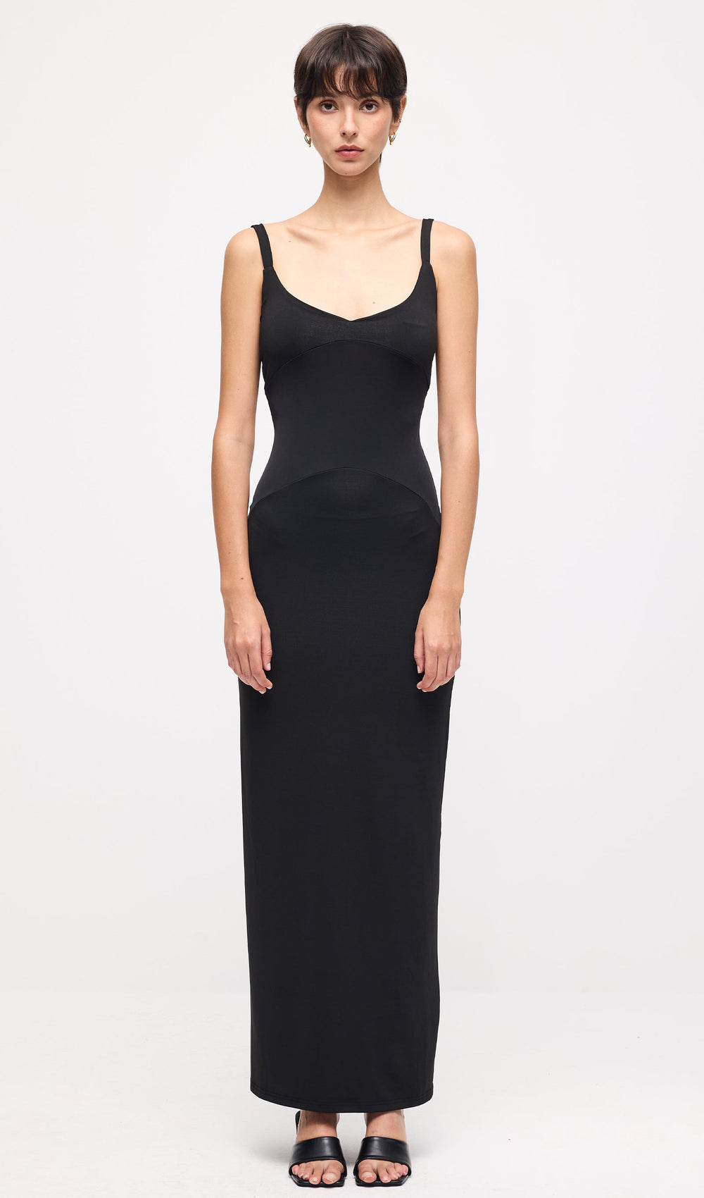 Elevate your wardrobe with this Solid Sleeveless Curve Maxi Dress in Black, designed to flatter your silhouette with its sleek, curve-enhancing cut. Crafted for comfort and style, its sleeveless design offers versatility for layering or wearing solo. The maxi length provides an elegant, elongated look suitable for both formal occasions and sophisticated casual wear. This dress combines timeless simplicity with expert tailoring to ensure a polished, confident appearance.