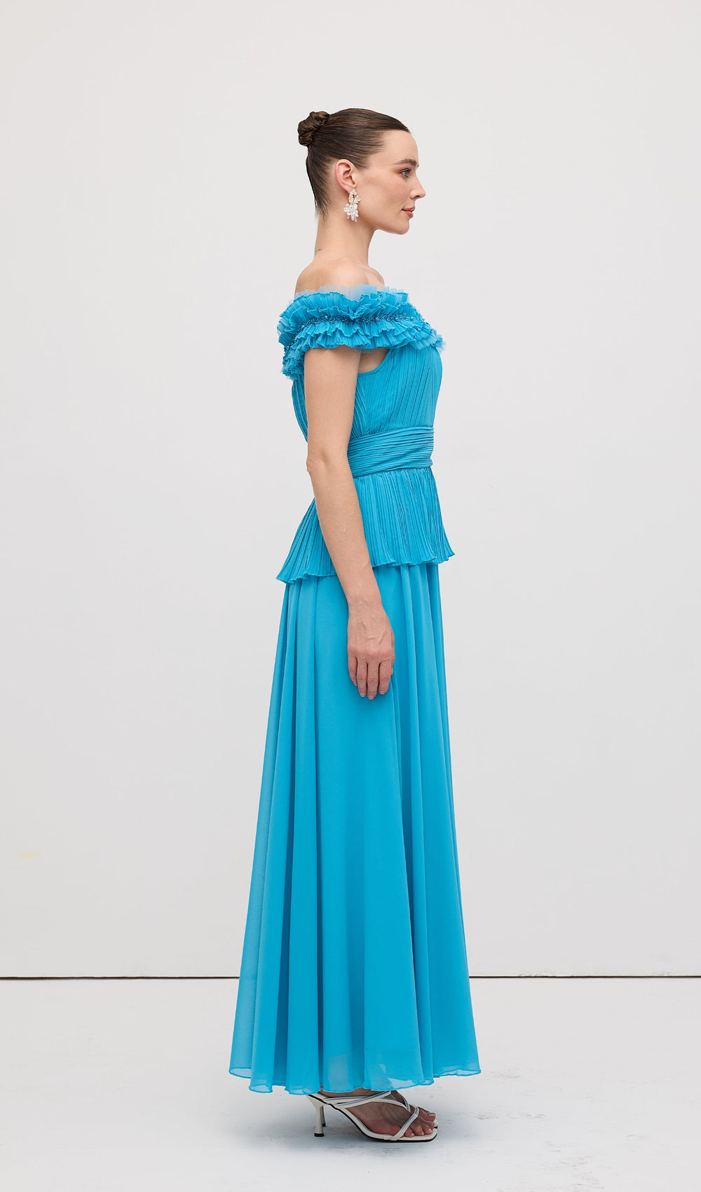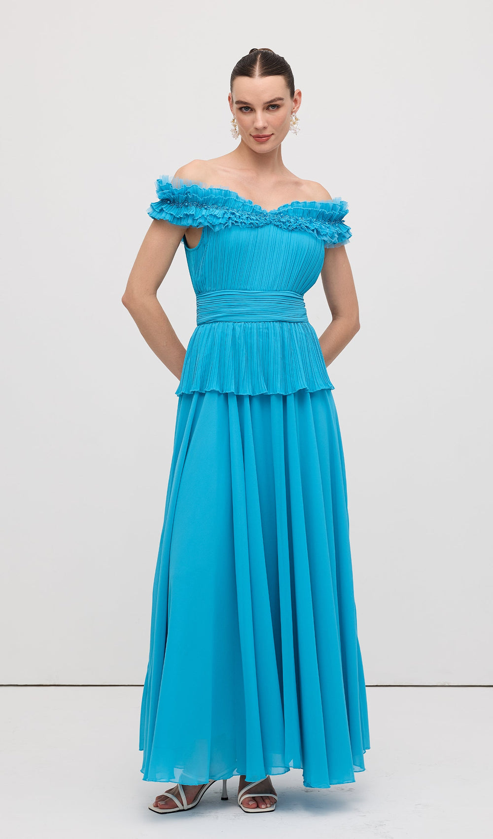Elevate your formal wardrobe with this sophisticated strapless maxi dress. Featuring elegant tiered construction and precise pleating throughout, this gown creates a flattering silhouette while offering refined movement. The solid color design ensures versatility for multiple formal occasions, from evening galas to wedding celebrations. The strapless neckline highlights your décolletage while the floor-length cut delivers timeless grace.
